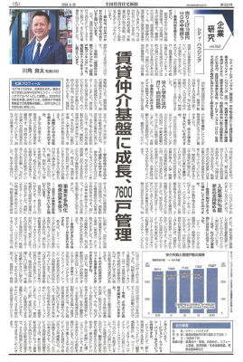 弊社代表取締役川角が、全国賃貸住宅新聞朝日新聞(2024年9月30日5面)に掲載されました。
